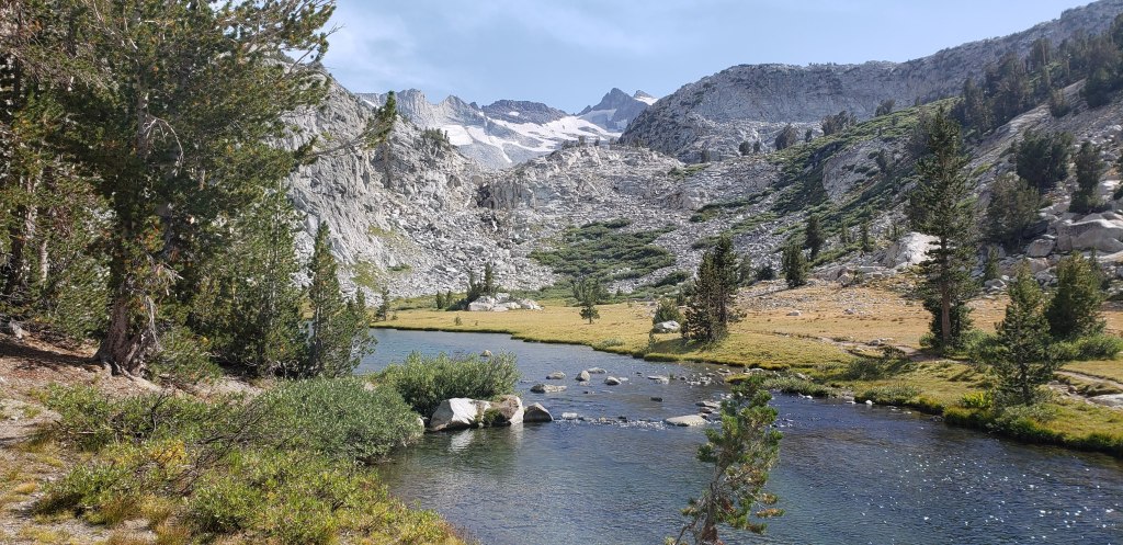It took a good 90 minutes for us to sort all our food, and stuff ourselves with all the other food people were leaving for other hikers. Our original plan was to go up until Piute Pass trailhead, but we decided to not stretch it and camp about a mile or 2 further from MTR. We proceeded along with the Purple Zombies and camped by a stream right before joining back the JMT. Me and my buddy decided to clean ourselves in the stream as there was enough daylight left. As we prepared our dinner, we were honorarily bestowed our trail names and were called “The White Walkers”, as we would always end up catching up to the Purple Zombies by the end of the day. The night was peaceful, and we were happy that we had passed the halfway point and were left with the remaining half.