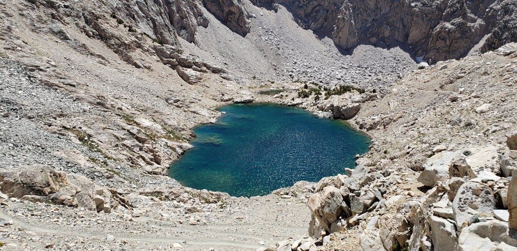 As we continued our ascent towards Mather Pass, the Boston Guys (remember our trail friends from Reds Meadow) decided to show up, and were pacing through like it was a Boston Marathon and they had a time to beat. We would meet them one final time towards the end of the day, and never saw them again. It took us about 2 hours before we could get to the vicinity of Mather Pass. We took a brief break before we started to head towards the pass. Mather Pass is a technically challenging pass as the trail is much narrower and the sharp granite rocks make your hike that much more difficult. We got to the top of Mather Pass around noon and would not meet anyone on top of it.