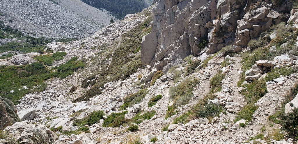 Right when you think that it cannot get any worse than the section of switch backs you just completed, you are dealt with another section of steep switch backs along the side of Glen Pass which take a toll on your spirits. As we continued our climb towards Glenn pass, we met two other trail friends who served as a challenge for my buddy. We never officially gave them a trail name, but I would call them “Fast and Furious”. The trail is narrow with some sharp granite rocks, and you will need to tread carefully at certain places so you won’t slip and fall. The combination of steeper switch backs, the narrow trail, and the sun all made it for a dreadful climb up Glenn Pass. After making it to the top, we would officially call it the “Toughest Pass” till day, but that name stuck on even after completing JMT.