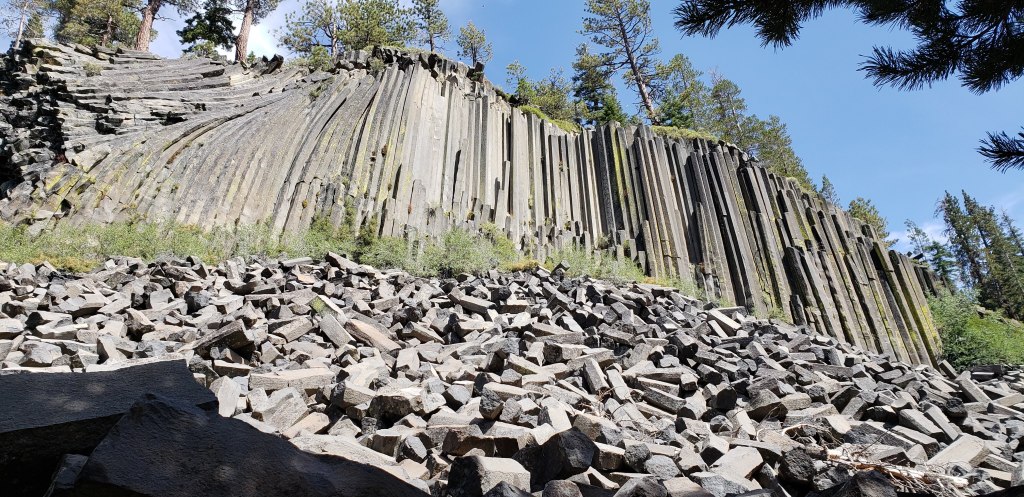 We continued on the trail after our morning break and were soon on the descent towards Reds Meadow. The descent was not shaded, but was helpful on the knees, not so much on the blisters. We entered Devils Postpile National Monument around 2 pm. From this point the trail ascends for a bit, before reaching the junction with Reds Meadow turnout. We had planned our first food pick up from Reds Meadow, and couldn’t wait to get there and relax for the day. As you head towards Reds Meadow you cross a foot bridge and head towards Devils Postpile National Monument. We went past the monument and reached Reds Meadow around 3:30 pm.