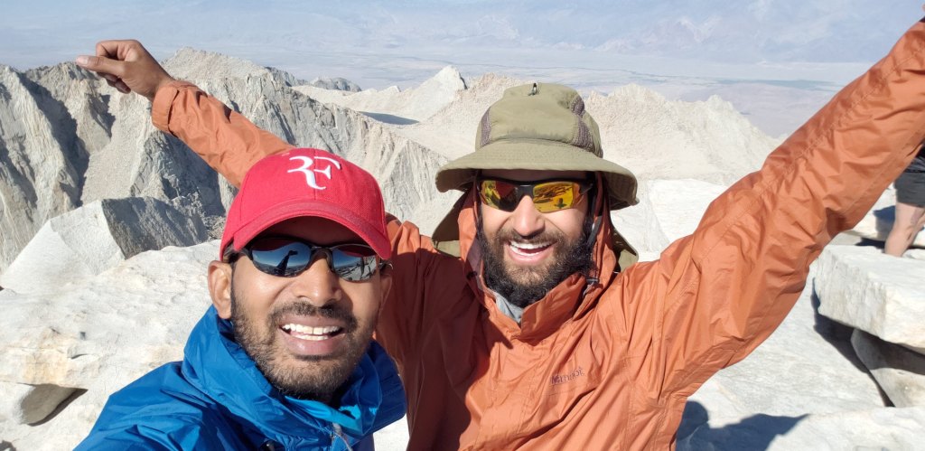 I was taking my time to get through the final part of the ascend towards Mount Whitney, and would eventually reach about 30 minutes after my buddy got there. As I approached the summit of Mount Whitney, I could spot my buddy, and the first thing we did was to hug it out! We had done it, the goal of thru hiking JMT was done, we were elated, we were happy, we were beyond words, but expressions spoke for themselves! To commemorate our hike, I had packed a flask of finest Whisky that would end my drinking drought of 9 months, and who better to share it than your buddy who was part of it, and our trail friends “Fast and Furious”.