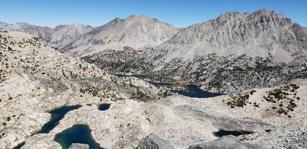 Day 11 – We woke up to a chilly morning and could not wait to get our breakfast going so we could warm ourselves up. We were getting better with time (if only 15 minutes) and were all set for the stretch of passes that we would go over the next 5 days. Like the famous saying “One Apple a day keeps the doctor away”; I came up with a better one “One pass a day, gets better everyday”. Each pass was more challenging than the other one, and we had all the harder ones ahead of us. We started with a gradual ascent along the Palisade Lakes for about 2 and half miles before gaining more elevation with distant view of Palisade Lakes.