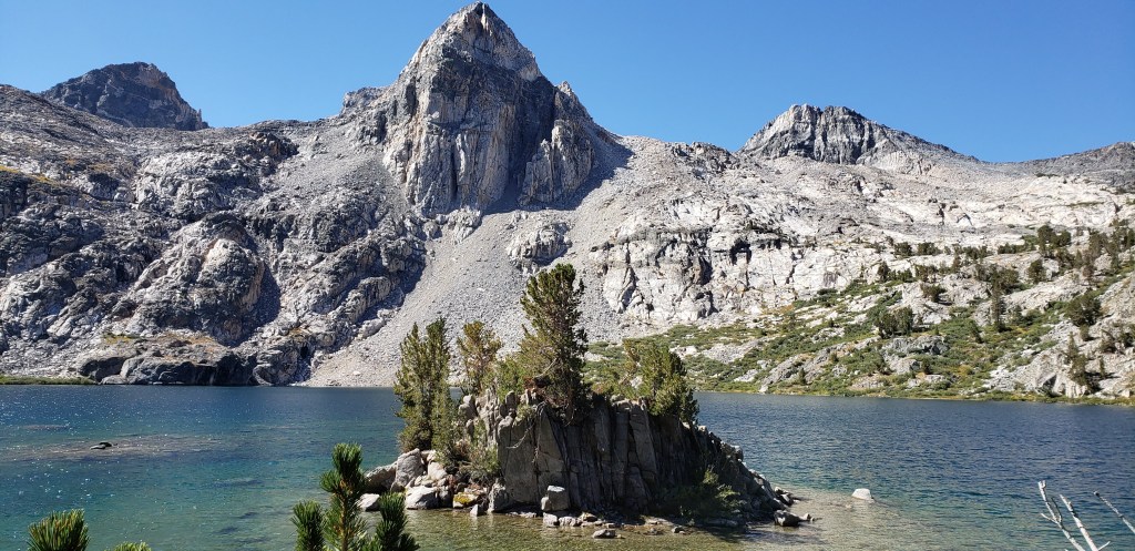 We took our day break at Rush Creek Trail junction and headed towards a mysterious pass named Island Pass. I call it mysterious because you never realize when you cross the pass and what lies beyond the pass is simply breathtakingly beautiful. As we descended Island pass we could get a glimpse of the magnanimous Banner Peak and were getting close to the beautiful Thousand Island lakes. As we continued on the trail for about a mile, we finally got to see the famous thousand island lakes in its full glory. We took a photo break where the view of thousand island lakes with banner peak at the back was the best, and then started going down the trail.