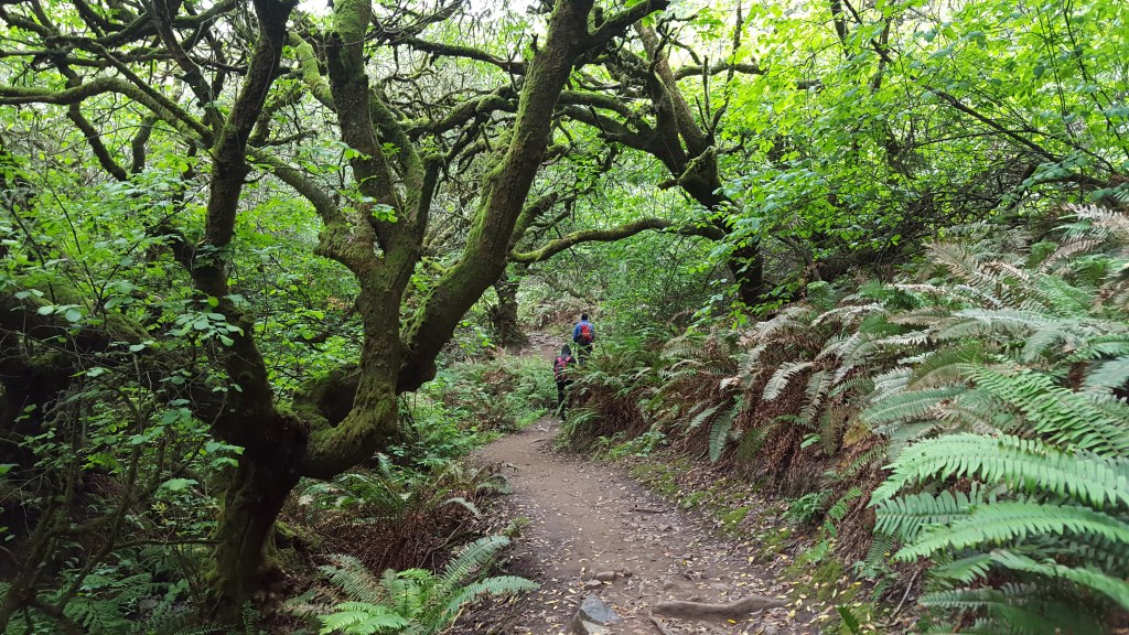 The hike starts from Dipsea trailhead located in Stinson beach. Its challenging to find parking at the trailhead as its limited, and most of the beach parking isn’t open until later in the day. The trailhead is situated close to Stinson beach fire station which serves as a good referral point if you park nearby. We started out on a foggy morning when there was a light drizzle. Dipsea trail begins to climb quickly along the grassy sidelines, and you can start to see views of the coastline as you go up. About 1 mile into the hike Dipsea trail connects with Steep Ravine Trail, which is where you part ways with Dipsea and head up using the Steep Ravine Trial.