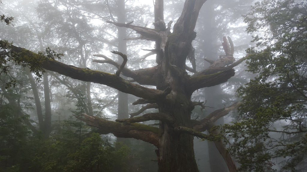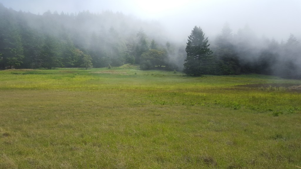 From Potrero Meadows Trail we took the Laurel Dell Road until it reached Ridgecrest Blvd. Our original plan was to take Coastal Trail and then Matt Davis Trailhead, but given that we had less time we decided to change our plans and continue on Willow Camp Fire Road. Willow Camp Fire Road has some steeper descends but is beautiful, and the fog made it much more scenic.