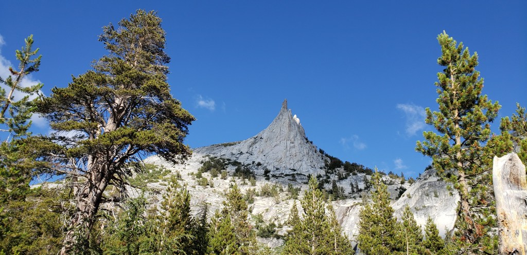 As we started descending from Cathedral pass, picturesque views of Cathedral peak were towering to the right. We started gaining pace on the descent before we could reach the junction of cathedral lakes. The trail takes a steep descend from the Cathedral lakes junction and we were getting increasingly close to the end. As we continued down the trail we started to realize that all markers of mileage did not make any sense, as we were trailblazing but it felt like we were going around in circles. We ran into a few hikers who were headed towards cathedral lakes for the sunset views. With the sunlight disappearing every minute we finally hit the last section of descent before we could hear the sound of cars passing by. We ended the hike at cathedral lakes trailhead around 7:30 pm, and waited out for the rest of the group. I managed to hitch a ride from Cathedral lakes trailhead to Lembert dome so I could drive our car back, and so everyone in the group didn’t have to make the painstakingly boring walk to reach the car. It took us a good 12 hours to cover the distance, and though we decided to not do long day hikes (more than 15 miles), I am pretty sure we will go back and do such crazy hikes again!